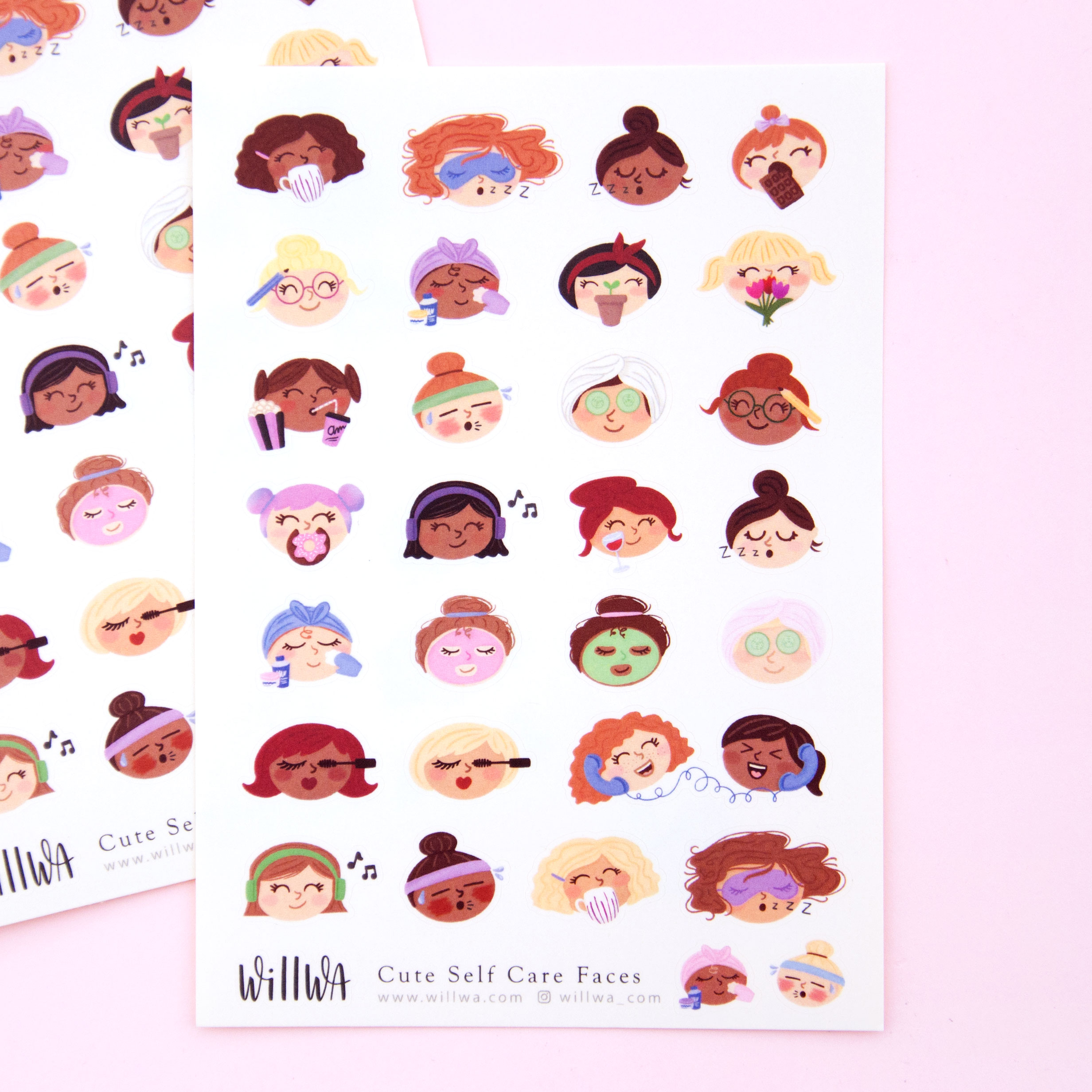 Cute Self Care Faces Sticker Sheet – Design by Willwa