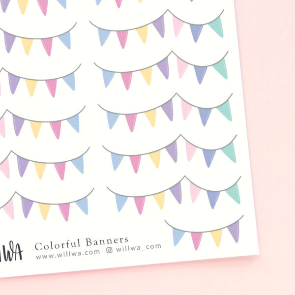 A sticker sheet filled with cute colorful banners. These mini deco stickers are perfect for planners, journals, scrapbooking and decorating your penpal letters.