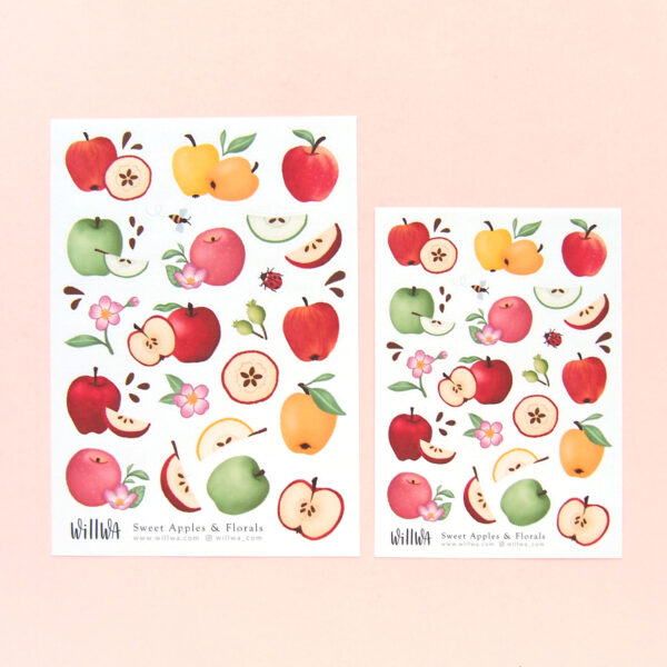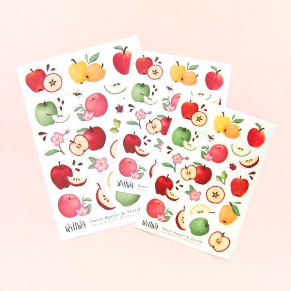 Beautiful apple illustrations of varieties of apples in different colors. There are also some slices of apples, insects, apple blossoms and kernels as decorative elements. Perfect to decorate your planner and bullet journal with!