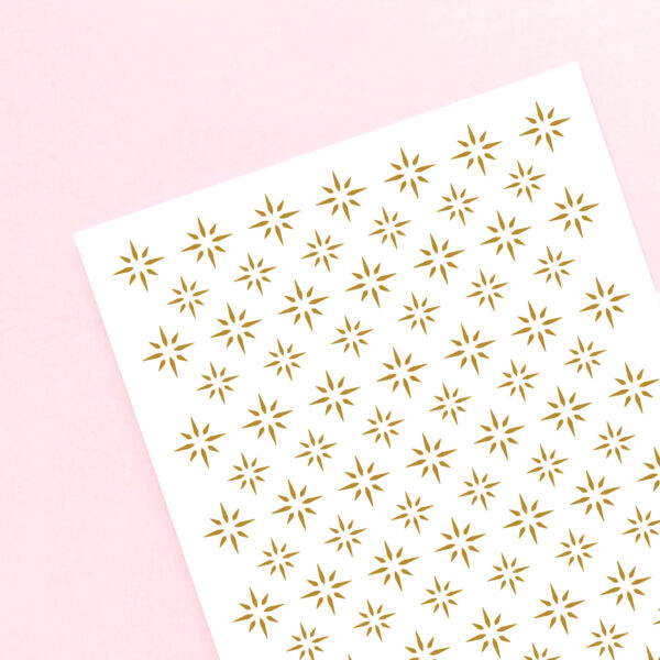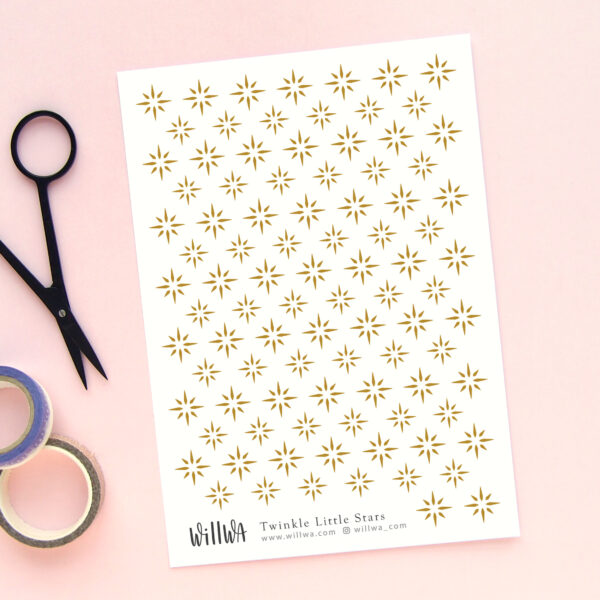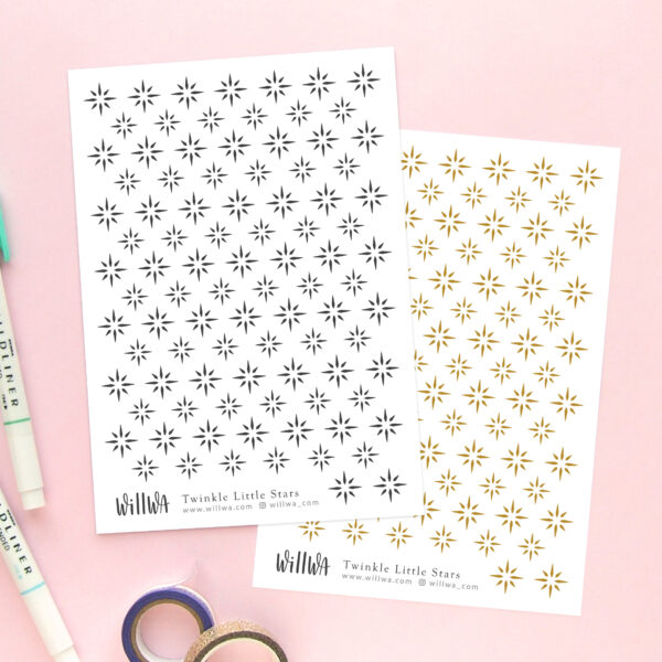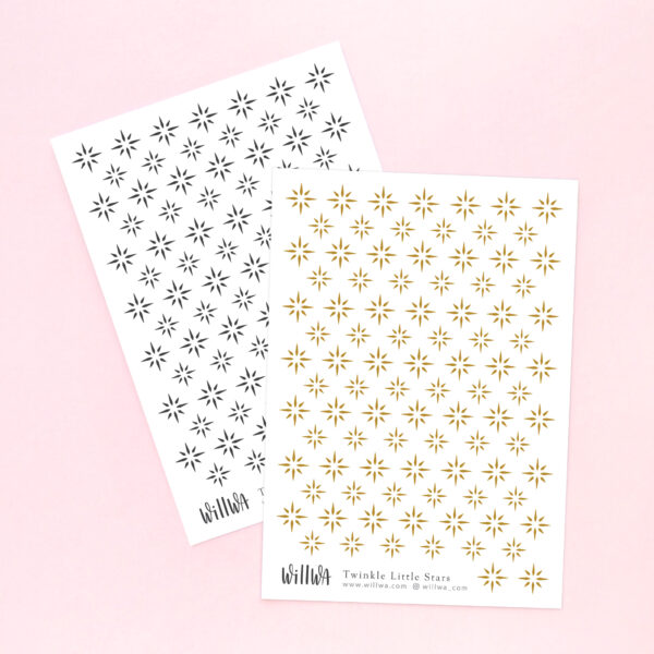 Sticker sheet filled with twinkling stars, choose between black or gold colour. These mini deco stickers are perfect for planners, journals, scrapbooking and decorating your penpal letters.