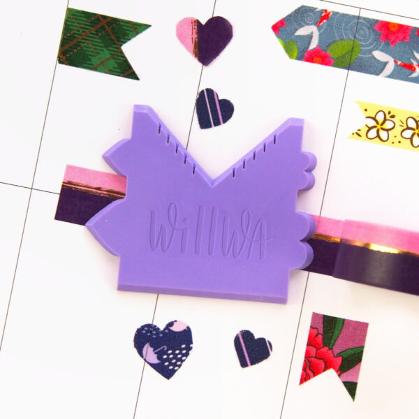 A cute washi cutter that cuts your washi into flags and hearts. You can create hearts from washi tapes with the width 10mm and 15mm and flags from washi tapes up to 30mm in width! This cutter is fun and easy to use, you just place down the washi where you want it, put the cutter on top and pull the washi tape against the cutter’s edge to rip it off. The flag cutter has markings for 10, 15, 20, 25, and 30mm, so you can easily line up your washi and cut a symmetrical flag. Perfect to use in planners, bullet journals, scrapbooking or other creative projects!